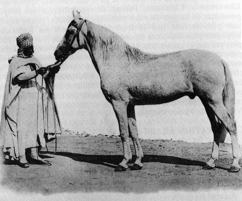 LES ARABES DEVIENNENT UN PEUPLE DE CAVALIERS Ce peuple a été considéré longtemps, et se considère toujours lui-même, comme celui des meilleurs cavaliers. Cette certitude repose sur une croyance religieuse. La tradition musulmane lui enseigne, en effet, que le premier fils d'Abraham, Ismaël, l'ancêtre de tous les Arabes, fut le premier homme qui monta à cheval. Avant lui, dit cette tradition, le cheval vivait à l'état sauvage dans la péninsule ! (?) Il l'apprivoisa sur l'ordre du Seigneur lorsqu'il vint à La Mecque, avec son père, poser les fondements du sanctuaire (3). Or, pour nous, héritiers de la civilisation romano-chrétienne, les Arabes, ces Sémites, ne sont pas apparus dans l'histoire comme cavaliers, mais comme chameliers. C'est ainsi que les montre la Bible au livre de la genèse, chapitre 37, verset 25 : " Leurs chameaux étaient chargés de gomme, de baume et de lactarium... ", c'était quelque seize siècles avant notre ère. Onze siècles plus tard, Hérodote, décrivant la cavalerie de Xerxès Ier, cite des contingents d'Arabes montés sur des chameaux. De même Tite-Live nous apprend qu'à Magnésie, en 189 av. J.-C., l'armée d'Antiochus, battue par Scipion, comptait dans ses rangs des archers arabes montés sur des dromadaires. D'ailleurs, Strabon raconte qu'Aelius Gallus, qui fit une expédition en Arabie en l'an 25 av. J.-C., ne rencontra aucun cavalier et ne trouva ni chevaux ni mulets. L'historien américain, P.-K. Hitti, écrit (4) : " De Syrie, le cheval fut introduit après le commencement de notre ère en Arabie où il trouva les meilleures conditions pour conserver la pureté de son sang et être préservé de tout mélange. " C'est alors que les Arabes, de chameliers, devinrent cavaliers. Et ce ne sera qu'au Ve siècle de notre ère qu'ils apparaîtront comme tels dans l'Histoire en tant qu'auxiliaires au service de l'Empire romain. Ce furent les " Thamoudeni Equites ", c'est-à-dire les Thamoudites des généalogistes arabes, divisés en deux corps, l'un à la frontière de l'Égypte, l'autre en Judée (5) ! C'est ainsi, par ces débuts modestes, qu'entrèrent dans l'Histoire ces fameux cavaliers qui, en moins d'un siècle, devaient faire boire leurs chevaux dans la Loire (732) et le Doubs (736) à l'occident, dans le Syr-Daria à Talas (751) à l'orient. Comment expliquer Lui tel phénomène ? ... Par l'évolution de la société bédouine, aux temps du paganisme, et par l'endoctrinement de cette société par le prophète Mahomet qui lui donna une foi et des moyens militaires pour la répandre à travers le monde. Telle est notre thése ! On a dit que la société bédouine ante-islamique a représenté la meilleure adaptation de la vie humaine aux conditions du désert. Pasteur de moutons, éleveur de chameaux, depuis peu et à un degré moindre, éleveur de chevaux, les occupations principales du nomade bédouin étaient en outre, et par nécessité, la chasse et la razzia. Dans cette société, le cheval de race, réservé pour les courses, les chasses, les raids et sélectionné dans ce but, prit une place sublimée par le fond poétique de ce peuple. De cela, portent témoignages les poèmes suspendus, Moallakat, qui racontent les prouesses d'Antara et de son cheval Abdjar, ainsi que celles de ses pairs ! Planche XV-a : Les Nomades cavaliers du Sud. La Khïma. Le Cheval de Sang Mais deux questions se posent : - Quel était ce cheval auquel les Arabes bédouins donnèrent la généalogie la plus prestigieuse ? Quel était ce descendant de l'étalon Awaj et de l'étalon Dahis pour la possession duquel une guerre fratricide survint entre les Abs et les Dhubyan dans la grande tribu des Ghatafan Ben Said, quelques années avant la prédication du Prophète ? Importé de Syrie, au début de notre ère, ce cheval a été classé dans le type le plus achevé du cheval Aryen, apparu dès le début de l'histoire humaine. Type qui s'est affiné et épuré dans l'isolement de la péninsule arabique. - Autre question importante : avec ce cheval déjà sélectionné, quelle équitation pratiquaient les contemporains bédouins d'Antara ? Elle était la plus simple et la plus sportive du monde. Possédant une assiette remarquable, acquise dès l'enfance sur le chameau au cours des longues transhumances, le nomade d'Arabie, sans étriers et souvent sans embouchure, s'adonnait à la chasse à courre, à la chasse aux faucons, aux jeux du Djérid et aux courses de chevaux, dans une équitation de vitesse libre et allante. Quand ce cavalier fut équipé des étriers et du mors (6), il devint le meilleur de son temps. Le prophète de l'Islam, ayant rassemblé les cavaliers d'Arabie en corps encadrés et commandés par des chefs de qualité, puis ayant doté cette nouvelle cavalerie d'une doctrine de guerre, elle conquit tout le Mashrek et tout le Maghreb. Planche XV-b : Kif-Kif, champion Barbe de l'exposition d'Alger, 1889. Le cheval du Maghreb (à comparer avec le cheval de Sibérie, planche XVIII-b). MOHAMED IBN ABDALLAH IBN ABD EL MOTTALIB, PROPHÈTE LÉGISLATEUR ET CHEF DE GUERRE Né en 570, c'est dans cette société que le prophète de l'Islam devait entreprendre sa prédication. On sait les difficultés qu'il rencontra et sa fuite de La Mecque à Yathrib (Médine) en 622. De cette date, l'hégire (la fuite), commence l'histoire de l'Islam et des conquêtes des Arabes devenus musulmans. Pour se rallier, ce peuple bédouin moqueur et sans esprit religieux, pour se créer une armée obéissante, dotée d'une tactique et de moyens adaptés à ses rêves de conquêtes, Mahomet fut plus qu'un prophète, mais aussi un génie militaire et politique ! Ayant entrepris son combat avec quelques compagnons et défenseurs (les Ansar) et seulement trois chevaux à l'affaire de Bedr (an II de l'hégire), il disparaît en 632 (an XI) léguant à ses successeurs la péninsule arabique entièrement soumise, une armée aguerrie et déjà importante (30 000 hommes pour l'